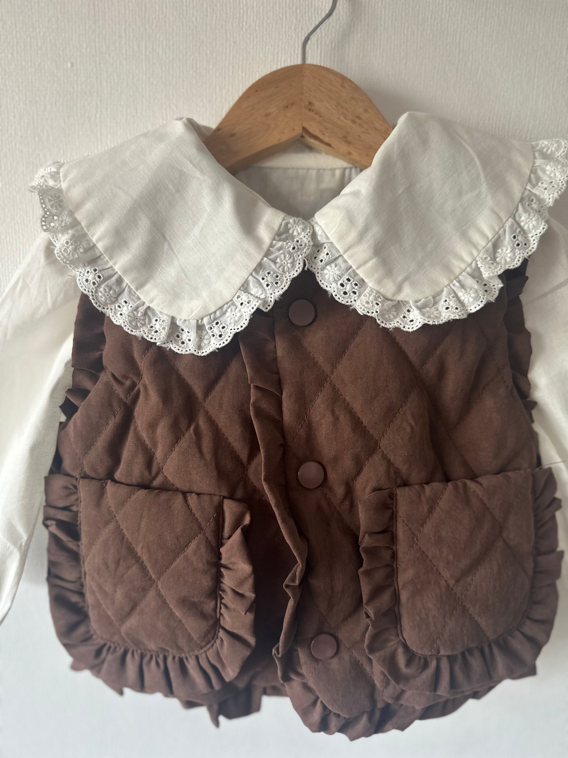 Blusa blanca con cuello romántico en encaje. Atemporal y delicada, es perfecta para combinar con cualquier conjunto elegante o casual.