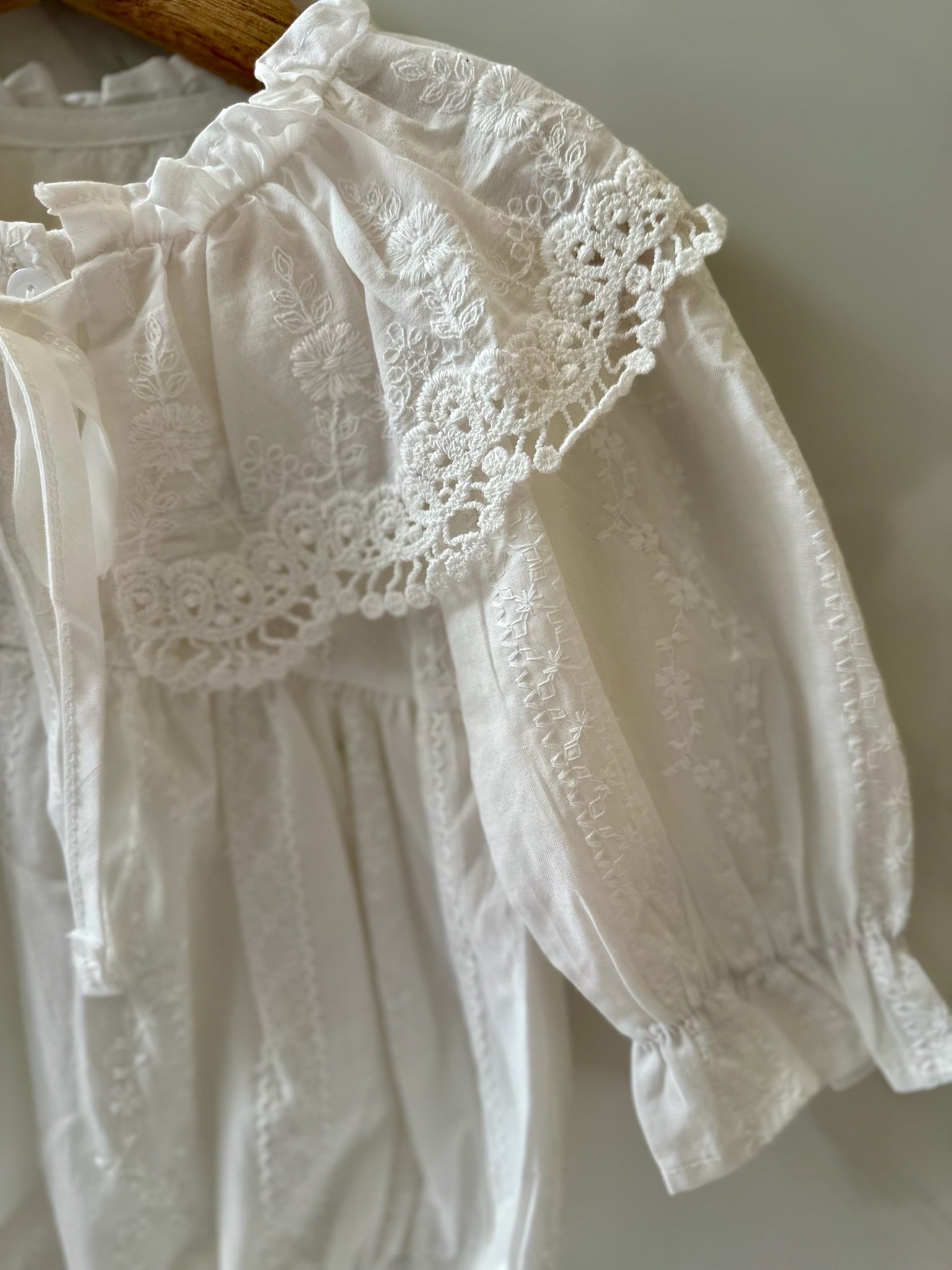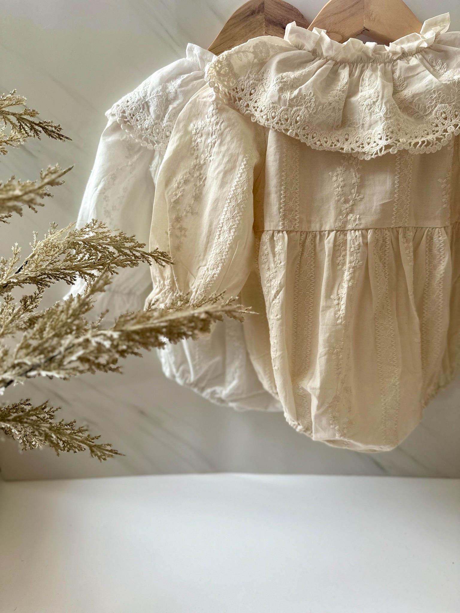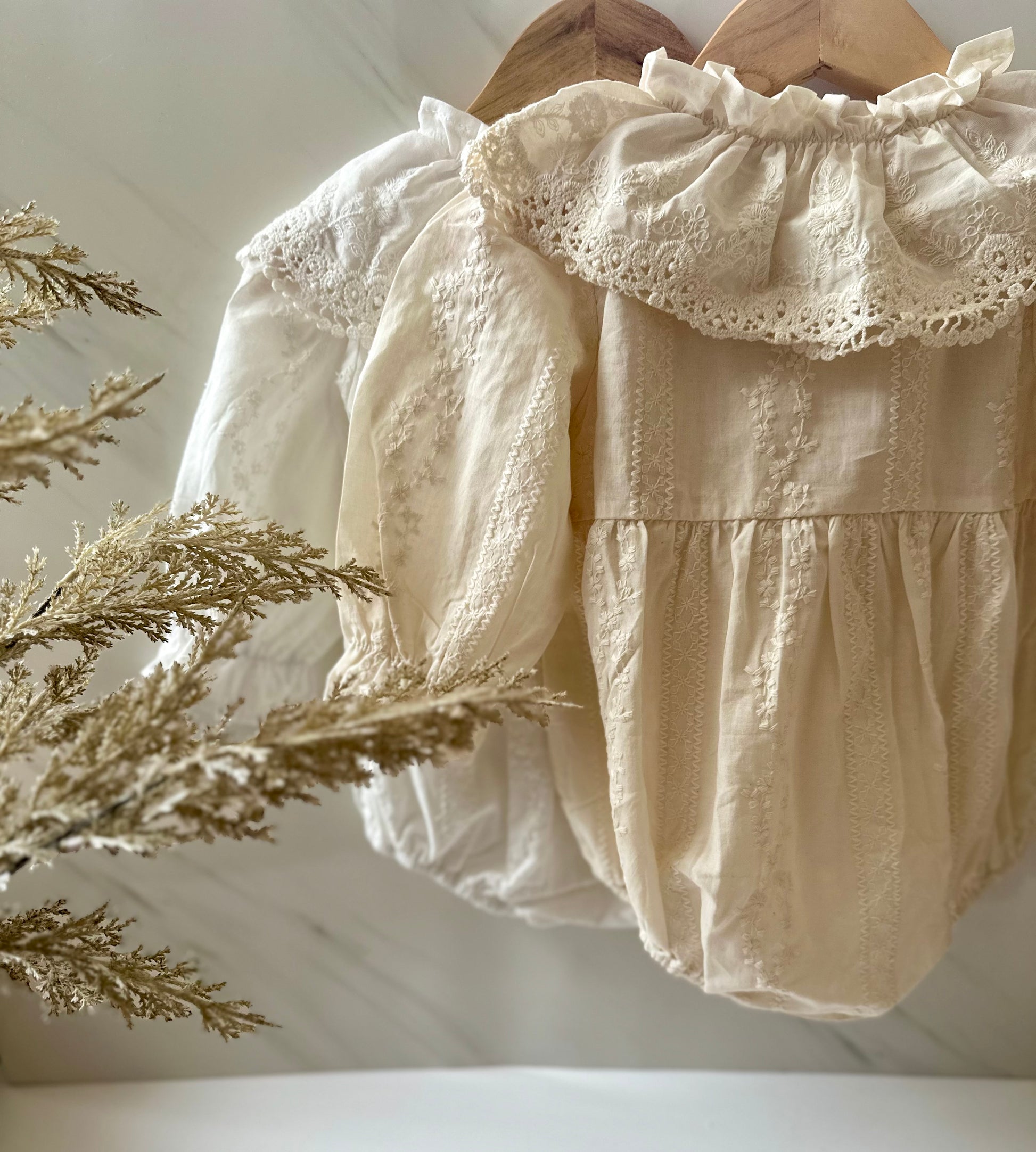 Esta encantadora ranita tipo vestido, estilo romántico es una prenda imprescindible para ocasiones especiales como bautizos o para lucir adorable en el día a día.